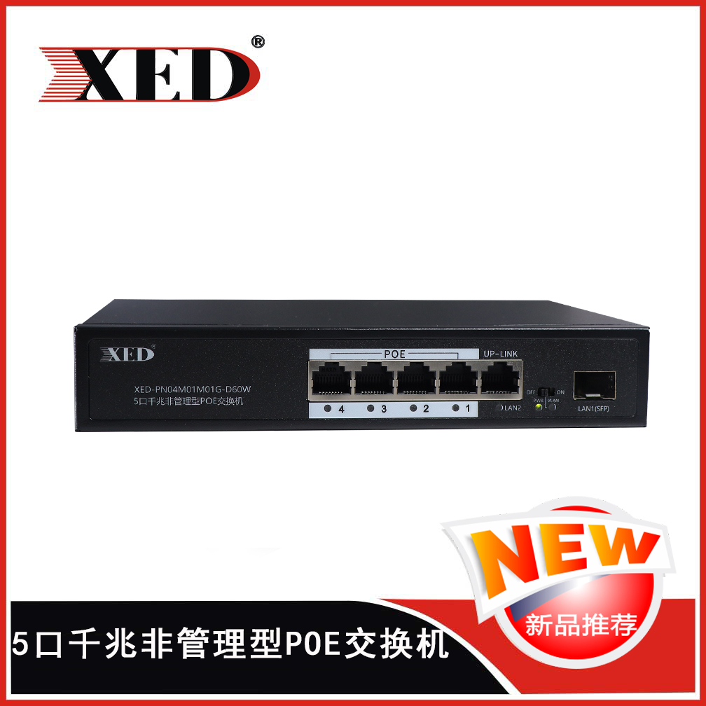 XED-PN04M01M01G-D60W 4+1千兆非管理型POE交換機,提供4個10M/100M/1000M自適應端口,1個上行10M/100M/1...
