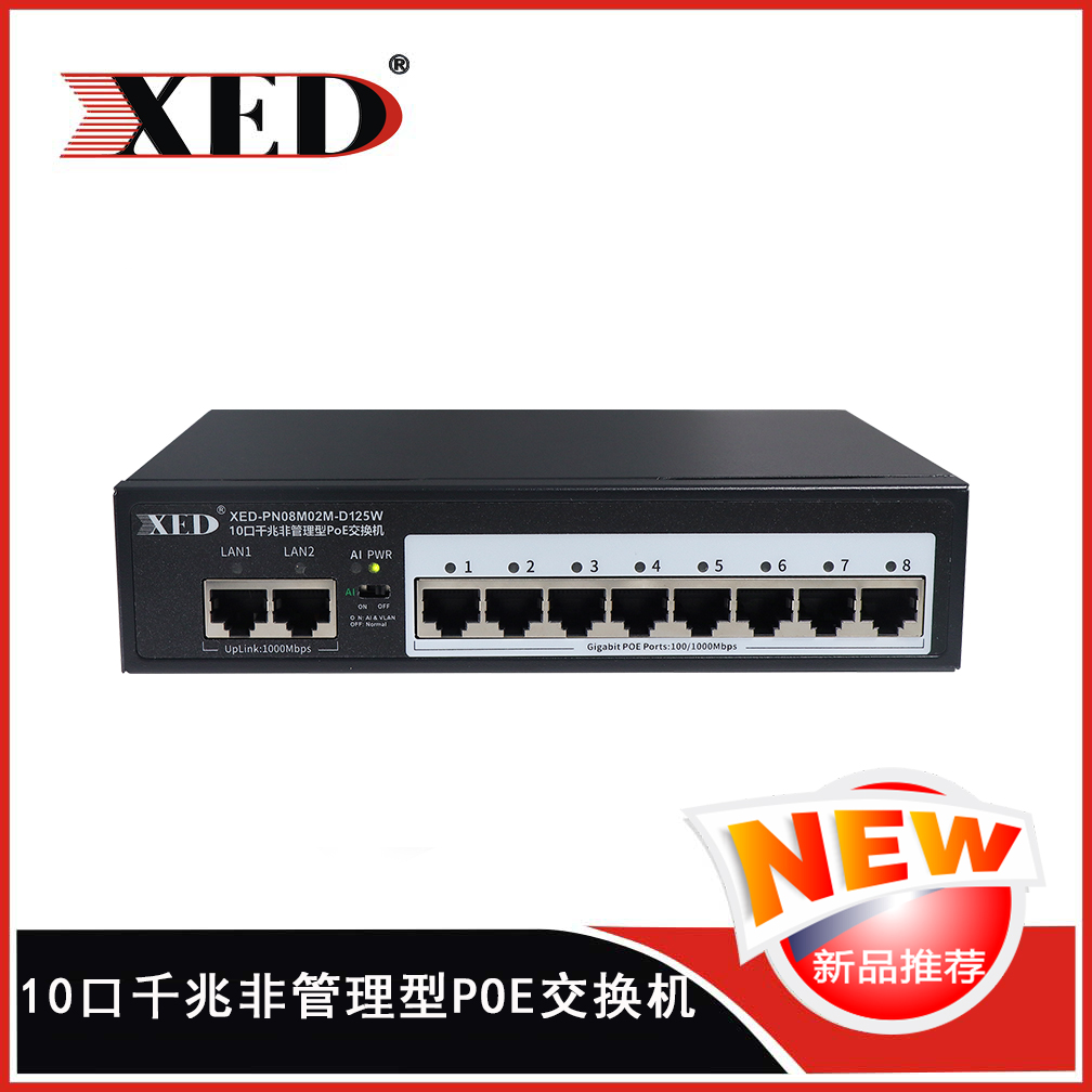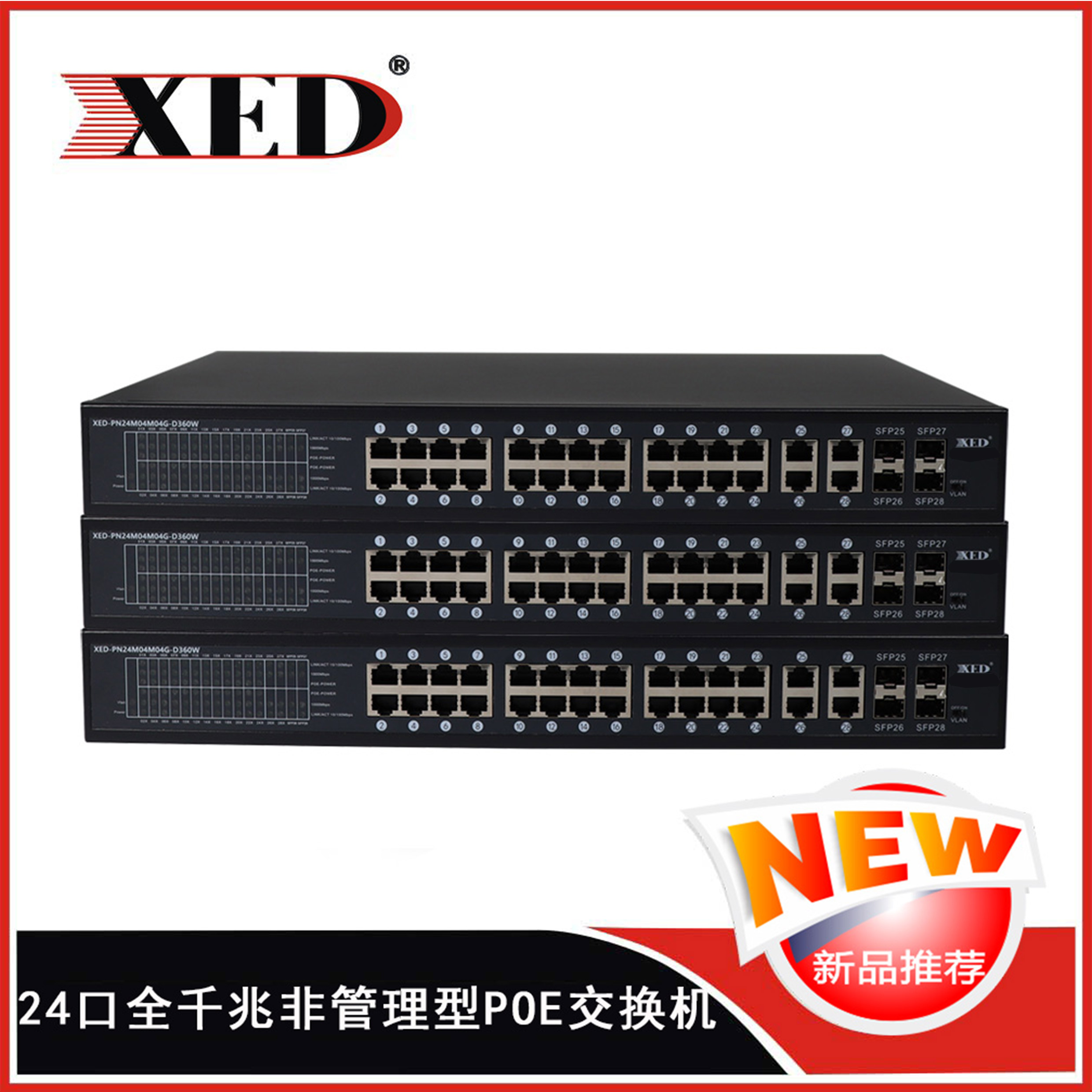 XED-PN16M04M04G-D240W,16FE+4G Combo千兆非管理型PoE交換機(jī)。提供16個(gè)10/100M自適應(yīng)RJ45電口,4個(gè)千兆UPLINK端口、4個(gè)SFP端口,其中端口1~端口16具備PoE供電功能,支持IEEE802.3af/at標(biāo)準(zhǔn),可作為為以太網(wǎng)供電設(shè)備,能自動(dòng)檢測(cè)識(shí)別符合相關(guān)標(biāo)準(zhǔn)的受電設(shè)備,并通過網(wǎng)線為其供電。