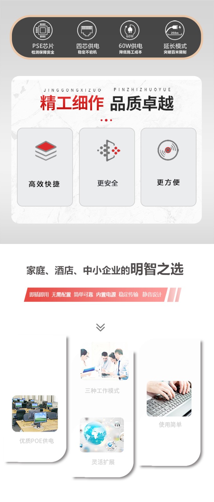 l網線供電傳輸距離最長可達250米,可靈活擴展網絡而不受電力線布局限制,輕松將無線AP、網絡攝像頭等終端設備掛在墻壁高處或天花板上;