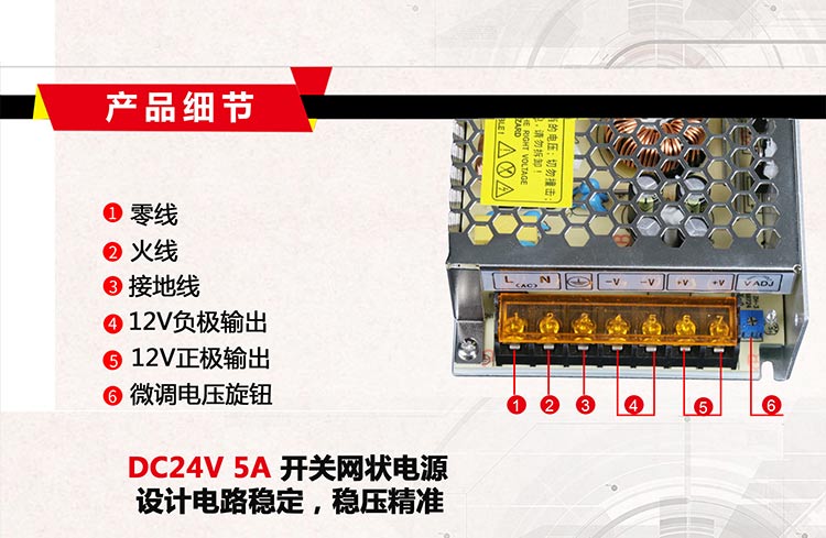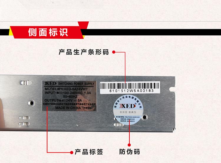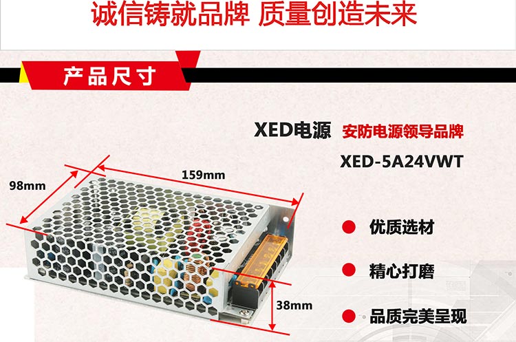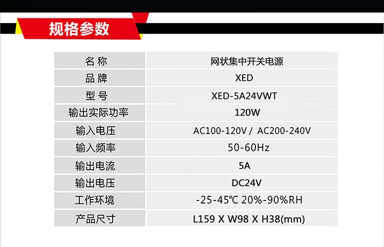 XED-5A24VWT網狀開關電源,集中供電電源,寬電壓AC100-120V/200-240V輸入。