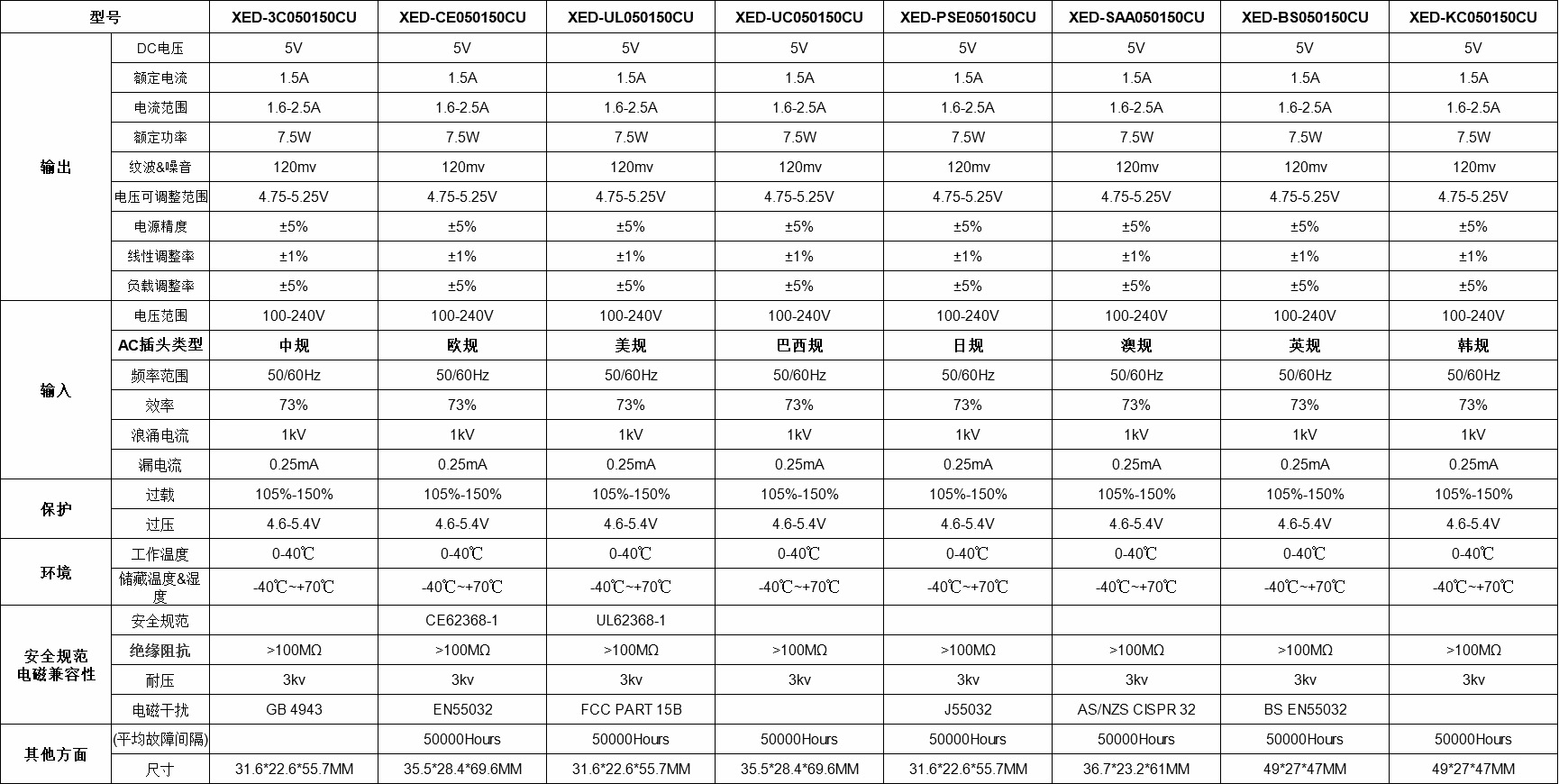 XED-CE050150CU USB插墻式電源適配器,通過全球認證,能過6級能效智能旅行電源適配器。
