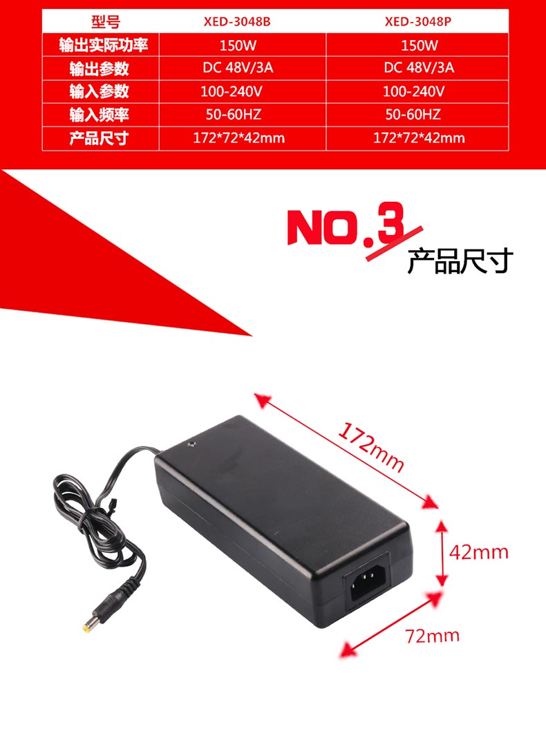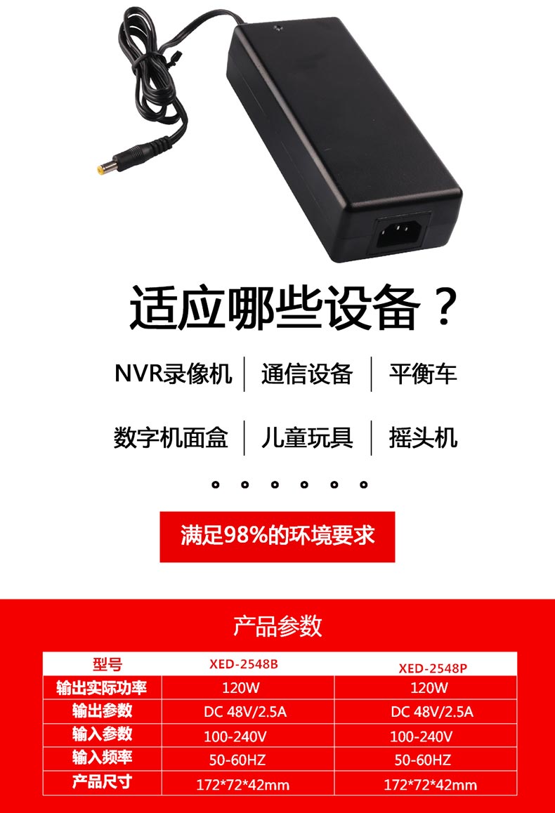 XED-2548B八字尾POE電源適配器,48V桌面式POE電源。