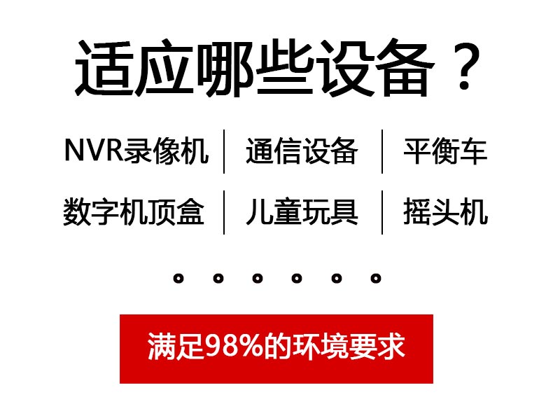 可適用范圍監(jiān)控安防、路由器、網(wǎng)絡(luò)交換機(jī)、考勤機(jī)、指紋考勤機(jī)、廣告機(jī)、顯示器、功放、工控設(shè)備、科研設(shè)備、儀器儀表、通訊設(shè)備、數(shù)碼產(chǎn)品等。