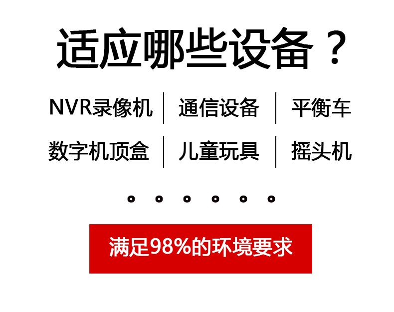 可適用范圍監(jiān)控安防、路由器、考勤機(jī)、指紋考勤機(jī)、廣告機(jī)、功放、工控設(shè)備、科研設(shè)備、儀器儀表、通訊設(shè)備、數(shù)碼產(chǎn)品等。
