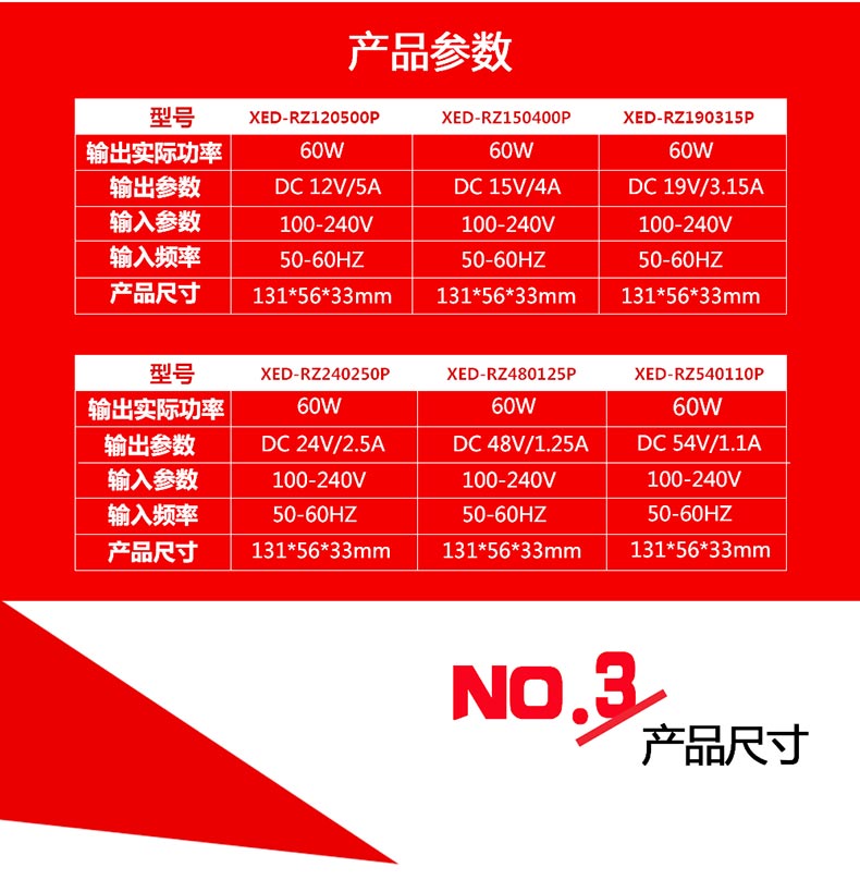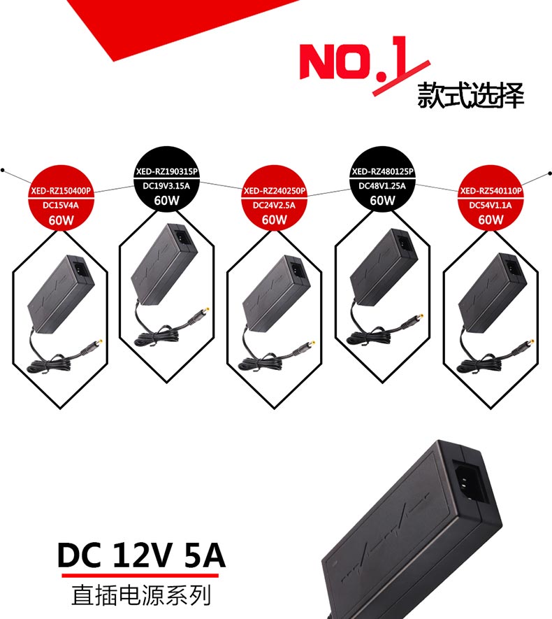 XED-RZ190315P品字尾電源適配器,60W桌面式電源適配器,能過6級能效,通過多國認證。