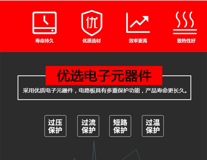 具有過(guò)載、過(guò)壓、短路、過(guò)熱等多重保護(hù);