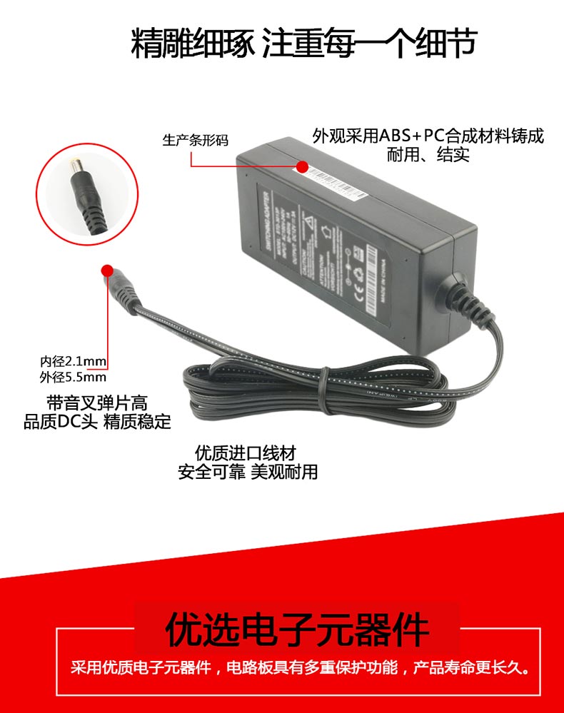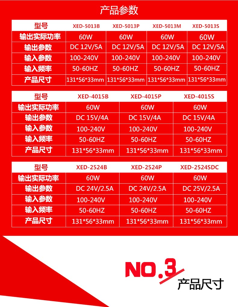 XED-2524P品字尾電源適配器,60W桌面式電源適配器。