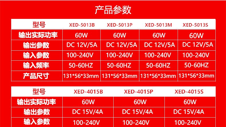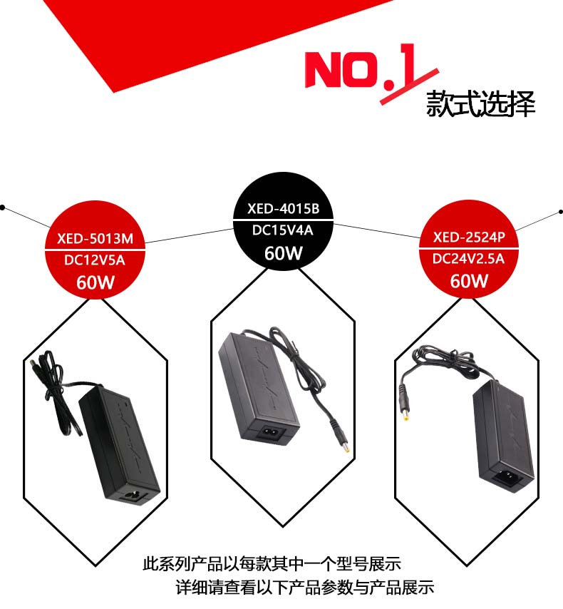 XED-5013S雙線電源適配器,60W桌面式電源適配器。