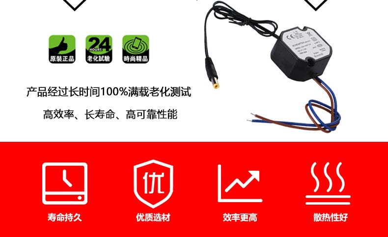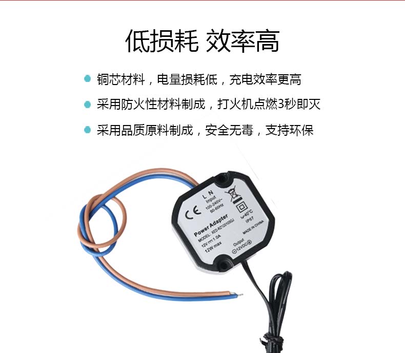 XED-10SF12H防水灌膠電源,采用AB膠材質加工而成,具有防水、防潮、防塵功能。 產品特點: 小型化開關電源,寬電壓輸入,穩壓精準; 具有過載、過壓、短路、過熱等多重保護; 產品經過長時間100%滿載老化測試; 高效率、長壽命、高可靠性能; 外觀精美,使用方便,維護簡單; 防水等級IP67。