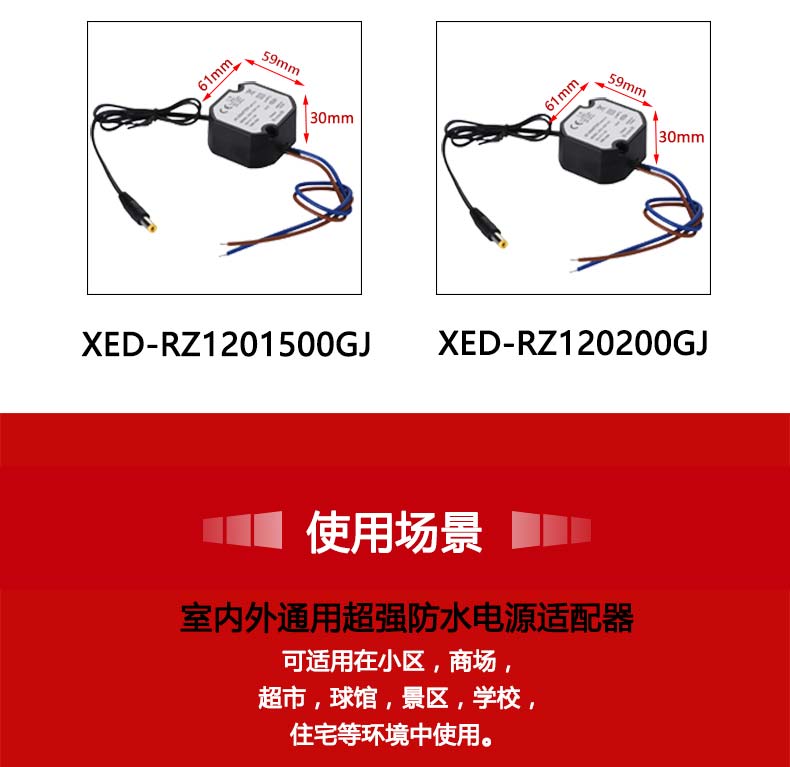 XED-RZ120200GJ防水灌膠電源,采用AB膠材質加工而成,具有防水、防潮、防塵功能。