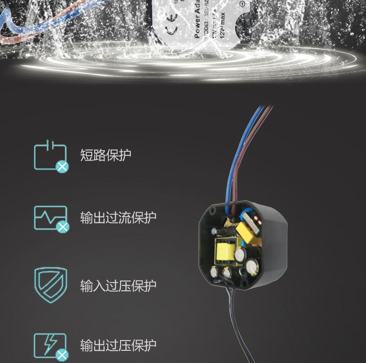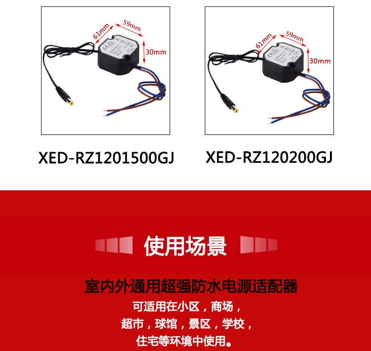 XED-RZ120100GJ防水灌膠電源,采用AB膠材質加工而成,具有防水、防潮、防塵功能。