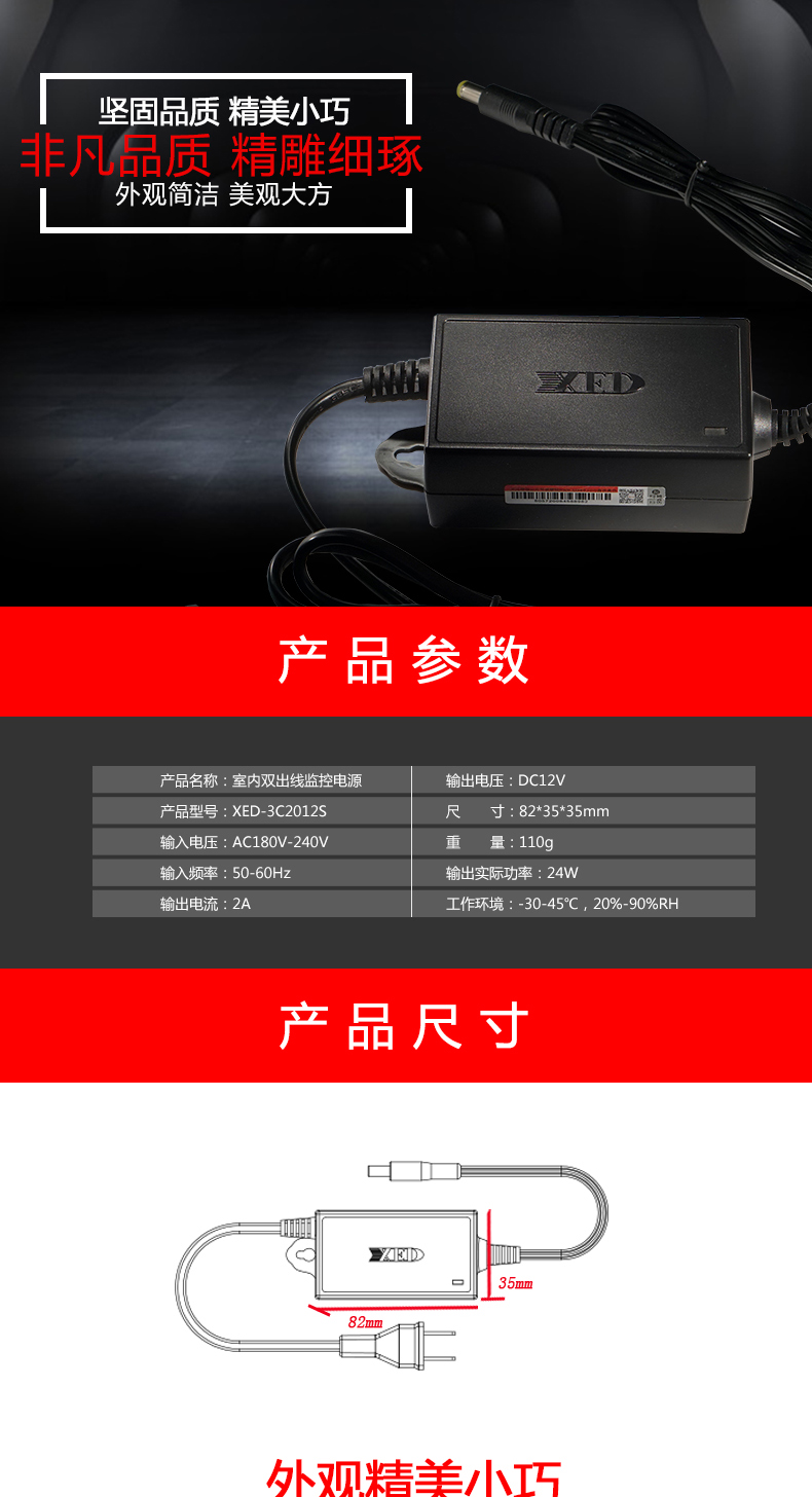 XED-3C2012S 室內桌面式電源適配器,全新升級版12v2a,24w電源。電壓AC180-240V輸入,適用國內范圍電壓。