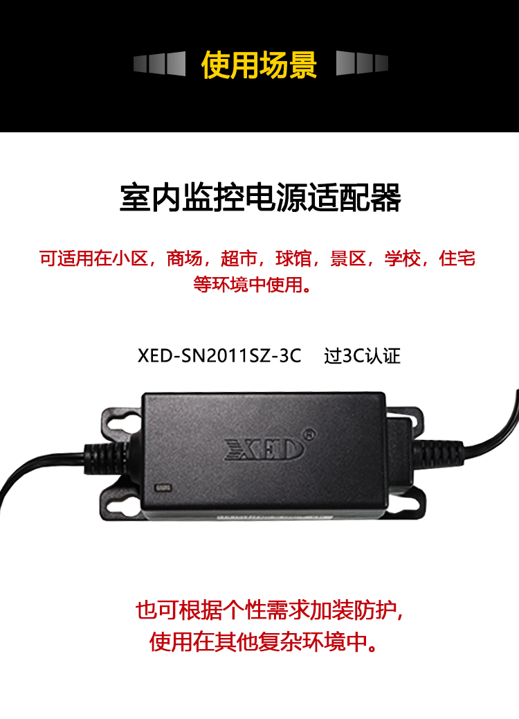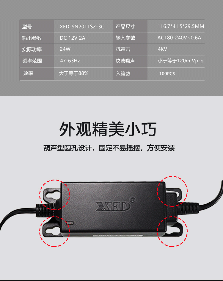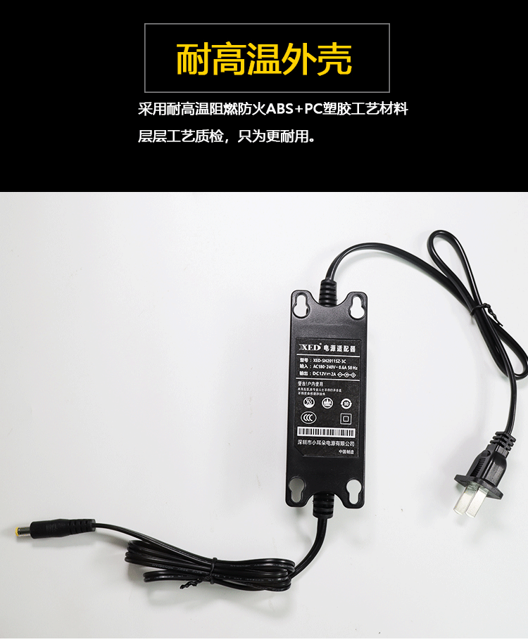 XED-SN2011SZ-3C室內桌面式電源適配器,全新升級版12v2a,24w電源。電壓AC180-240V輸入,適用國內范圍電壓。