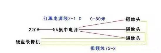 集中供電模式,即:在監控室或某個中間點,采用12伏的開關電源向前端負載集中供電。