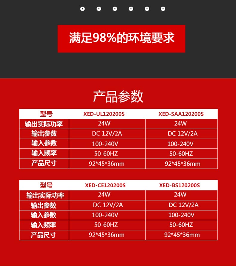 XED-UL120200S美規電源適配器,24W桌面式電源適配器,能過6級能效,通過多國認證。